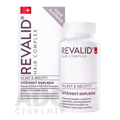 D,L-metionín, obal kapsuly: hydroxypropylmetylcelulóza, L-cystín, extrakt z trúdnika klobúčkatého (Polyporus umbellatus), extrakt z reishi (Ganoderma lucidum), extrakt z prosa, extrakt z rozmarínu (Rosmarinus officinalis), vitamín B5 (D-pantotenát vápenatý), železo (glukonát železnatý), kyselina para-aminobenzoová (PABA), zinok (glukonát zinočnatý), mangán (glukonát manganatý), vitamín B6 (pyridoxín hydrochlorid), maltodextrín, protihrudkujúca látka: oxid kremičitý, protihrudkujúca látka: horečnaté soli mastných kyselín, meď (glukonát meďnatý), selén (selénan sodný), biotín. Viac na adc.sk